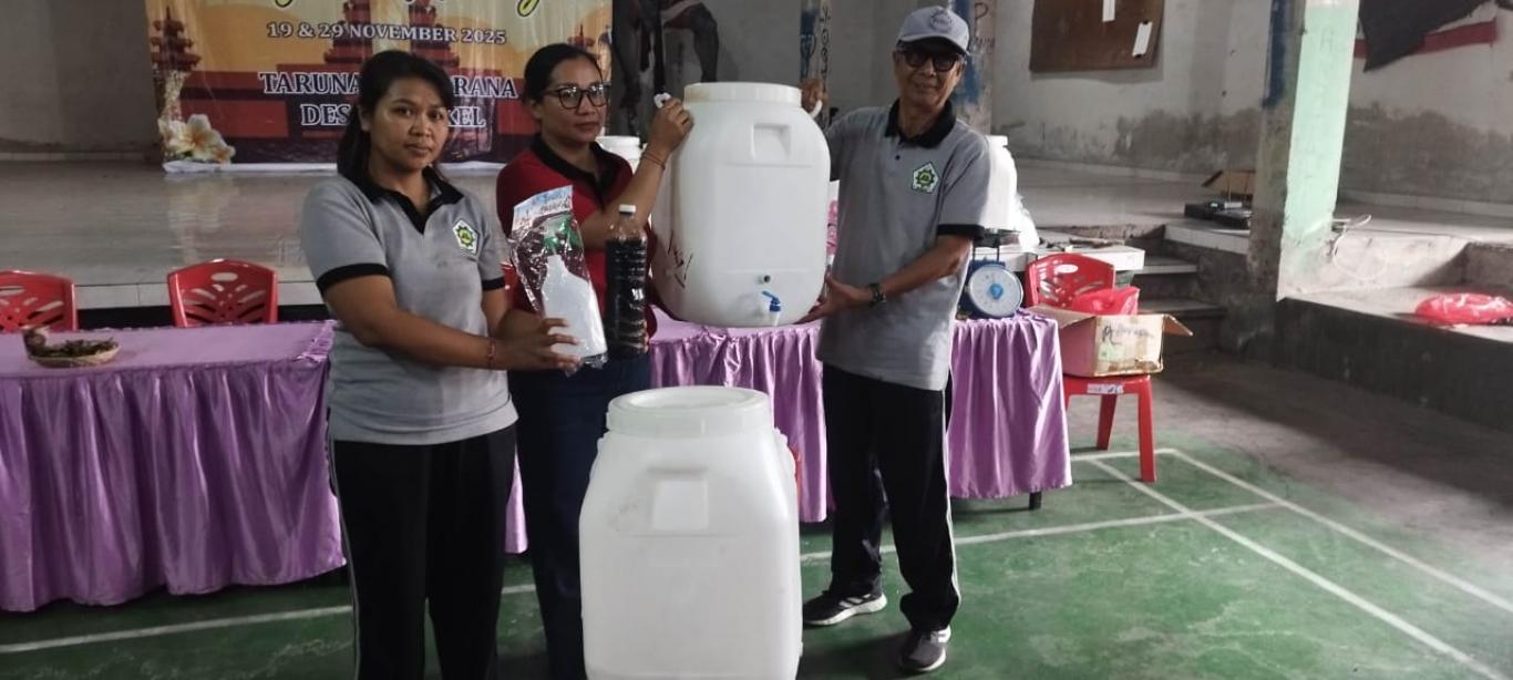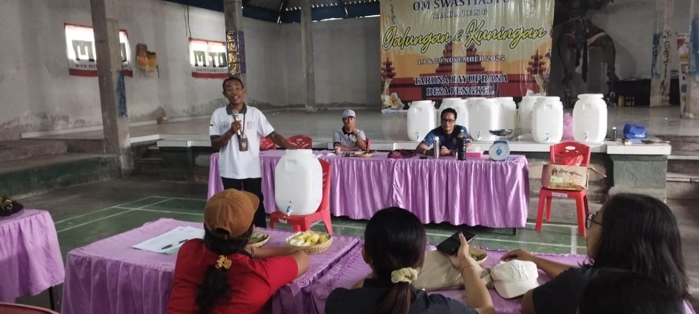 JUMAT, 19 Desember 2025 pemerintah desa bengkel melaksanakan kegiatan pelatihan pembuatan ecoenzym dan penggunaan tong komposter di gedung serbaguna arena desa bengkel. kegiatan ini mendatangkan langsung narasumber dari dinas DLH yang juga pengelola bank sampah pusat yaitu bank sampah Kaliber. pelatihan ini dihadiri oleh bapak perbekel desa bengkel, BPD desa bengkel, Kelian Banjar Dinas, dan PKK desa bengkel. dalam pelatihan ini dijelaskan mengenai pembuatan ecoenzym yang mengguanakan bahan dasar molasa, sisa buah dan sayur, dan air dengan perbandingan 1:3:10 yaitu molasa 1 kilogram, buah dan sayur 3 kilo gram dan 10 kilo gram air dan dipermentasi selama 90 hari. Hasisil ecoenzym memiliki banyak manfaat diantaranya untuk mencuci baju, pupuk organik cair, vitamin ternak dan masih banyak lagi. kegiatan dilanjutkan dengan pelatihan penggunaan tong komposter untuk sampah organik untuk bisa dijadikan pupuk organik cair. dalam kegiatan ini juga dibagikan tong untuk pembuatan ecoenzym dan tong komposter kepada PKK desa bengkel.